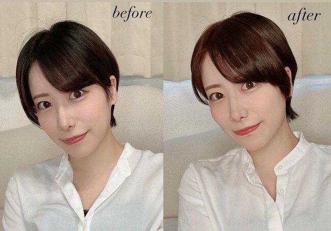 <mocaちゃんがライブ配信中にヘアカラーを行った実際のビフォーアフター>