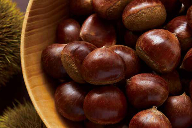 鶴屋吉信では、長い年月をかけて大切に育まれてきた国産和栗にこだわり、栗の三大名産地である茨城県・熊本県・愛媛県から「熊本県産」の栗を選びぬきました。また、時期によっては、近年希少となりつつある丹波地方産の「丹波産新栗」も使用。