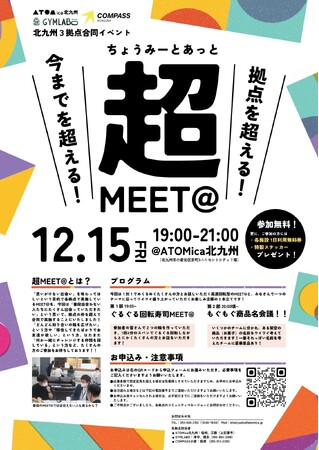 そんなMEET@、今回は、情報通信産業の振興や中小企業、新事業に挑戦するベンチャー企業などを創出・育成するスタートアップ支援を行う共創拠点「COMPASS小倉」(https://compass-kokura.com/)、九州工業大学内の旧体育館を大胆にリノベーションした産学官連携の共創拠点「GYMLABO」(https://www.gymlabo.kyutech.jp/)、そしてATOMicaが自社で運営する直営拠点「ATOMica北九州」(https://atomica.co.jp/kitakyushu/share/)の3拠点が集結して、普段の「MEET@」の拡大版、「超MEET@」を開催します。