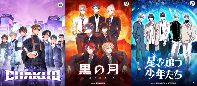 HYBEは、直接企画・開発したオリジナルストーリーIPであるオリジナルストーリーをもとに、webtoon、webノベルなど様々な拡張コンテンツを展開してまいります。今回公開された3編のオリジナルストーリー『7FATES: CHAKHO』、『黒の月: 月の祭壇』、『星を追う少年たち』は、それぞれBTS、ENHYPEN、TOMORROW XTOGETHERとコラボレーションした作品です。それぞれのwebtoon、webノベルは、ストーリー中のキャラクターをアーティストが表現し、より生命力を与える「アーティストコラボレーション」方式で制作され、新たに没頭できるコンテンツを提供しています。