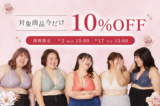 プラスサイズ専門下着ブランド「グラマープリンセス」公式オンラインショップにて期間限定で対象商品10%OFFのキャンペーンが9/2(月)15時からスタートします。