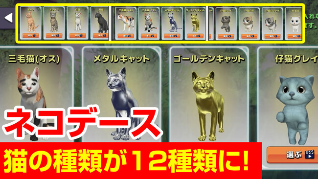 ・ログイン時に広告を見ることで猫の種類が選べるようになりました。