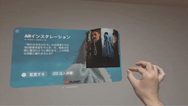 空間に表示されたデジタルオブジェクトを指により操作することで、従来のスマートフォンとは全く異なる、インタラクティブ性の高い空間体験をすることができます。