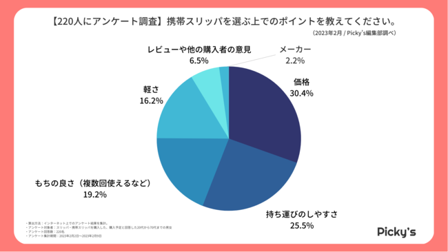 「Picky’s」は、インターネットショッピングにおいて、購入前に試せない・選ぶべきものがわからないという課題の解決を目標に、あらゆる商品のおすすめランキングや検証レビューを紹介するサイトです。このたびPicky’s(https://rentry.jp/note/)では、2023年3月8日スリッパを楽しむ日に先駆けて、スリッパ・携帯スリッパについてインターネット上でアンケート調査を行いましたので発表いたします。