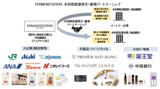 ファーメンステーションでは、今後も未利用資源の再生・循環パートナーシップの取り組みを拡大し、貴重な未利用資源を有する企業(食品・飲料メーカー等)や、そのアップサイクルした原料や商品を展開可能な企業(化粧品・生活雑貨メーカー、小売り等)との連携を推進してまいります。