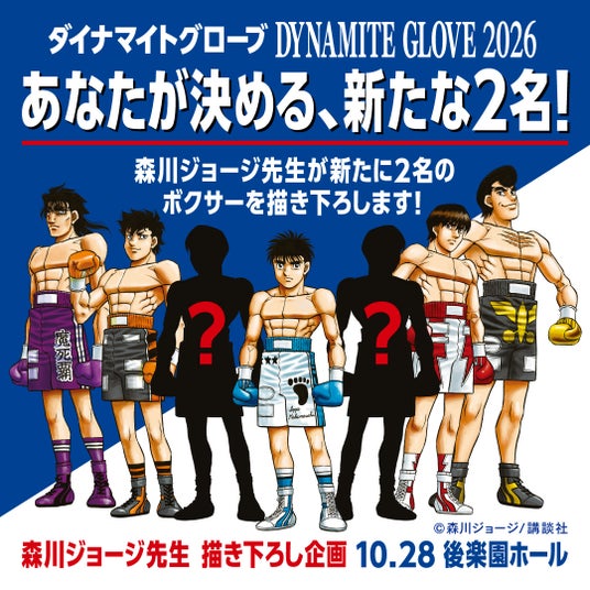 まずは本大会の開催決定に伴い、ボクシング漫画の金字塔『はじめの一歩』の作者・森川ジョージ先生による「メインビジュアル追加キャラクター決定ファン投票」を、本日4月20日(月)より先行して開始いたします。