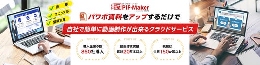 PIP-Makerは、既存のPowerPointの資料をもとに、最短5分でAIアバターがナレーションを行う動画を作成できるクラウドサービスです。PowerPointのノート欄に話す内容を記載し、資料をアップロードするだけで、専門的な編集スキルがなくても動画コンテンツを作成できます。