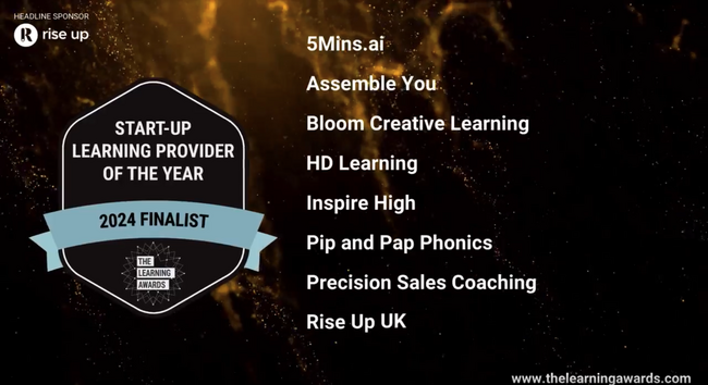 “Start-Up Learning Provider of the Year”は、ビジネスにおいての明確なインパクトを実証していることや明確な差別化要因、革新性、成長性などが選定基準となっています。Inspire Highはこれらの基準において高く評価され、ファイナリストに選出されました。