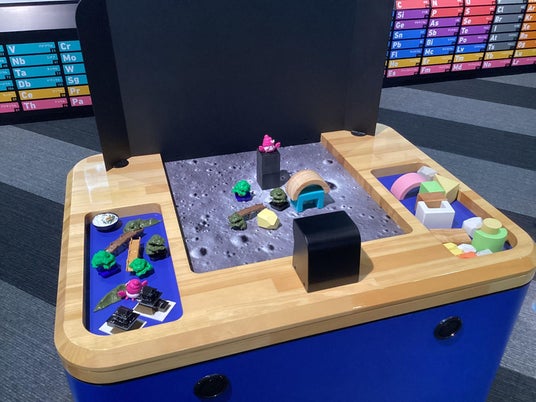本コンテンツは、子どもたちが月面を模したパネルの上にさまざまなブロックを自由に配置することで、自分だけの月面都市を生成できる体験型展示です。ブロックの配置に応じて生成AIがリアルタイムに月面都市を生成し、プロジェクション映像として投影します。高松市こども未来館の公式キャラクター「ミライエーイちゃん」が、子どもたちに月面や宇宙開発に関する情報を楽しく解説します。