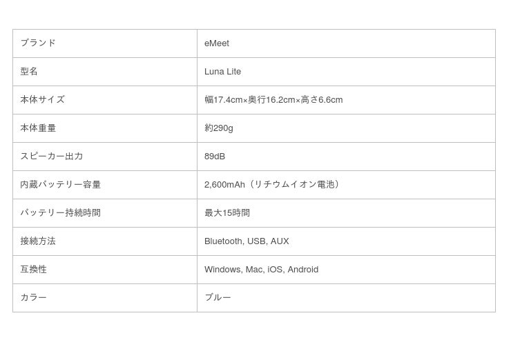 『eMeet Luna Lite』は、コンパクトかつ軽量で、持ち運びに適したマイクスピーカーです。カバンなどに入れて外出先へ持ち運んでも支障にならないでしょう。