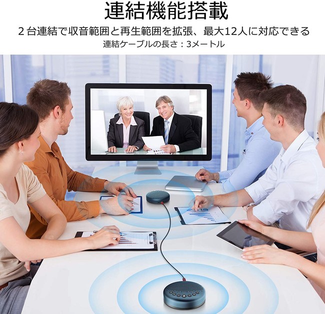 ▼2台を連結させることで最大12人の多人数会議にも対応可能。