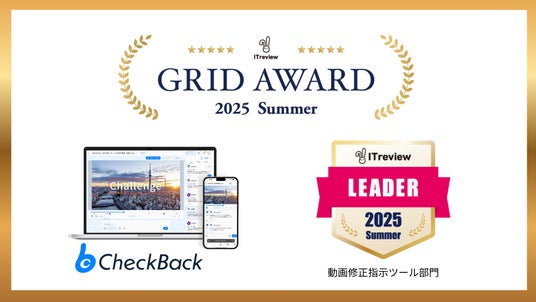 rayout株式会社が運営・開発を行うSaaSツール「CheckBack」が、「ITreview Grid Award 2025 Summer」の動画修正指示ツール部門で「Leader」を受賞したことをお知らせします。