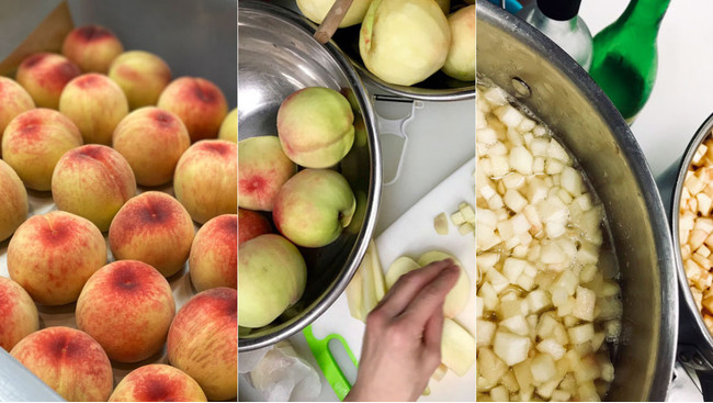 収穫した桃は、スタッフが一つ一つ丁寧に皮を剥いてカットをし、コンポートにします。