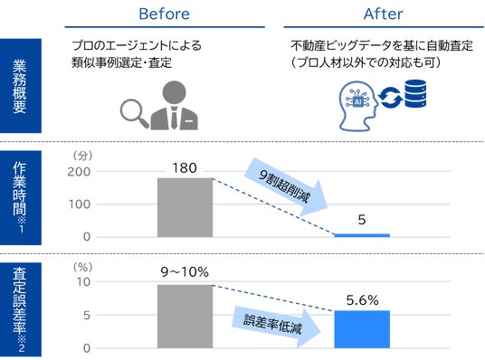 ※2査定誤差率は、東京都23区内マンションに関する、SREHDエージェントによる査定結果又はAI不動産査定ツールによる査定結果と実際の取引価格の乖離率の中央値(2024年12月時点)