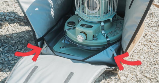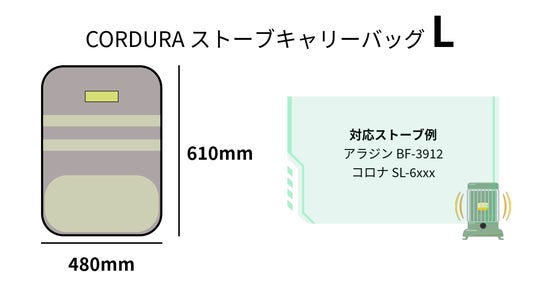 MとLの2つのサイズが用意されており、石油ストーブのサイズに合わせて選べるのが特長です。自宅での保管や車載時において、衝撃からの故障や灯油臭漏れといったトラブルを未然に防ぐこともできます。