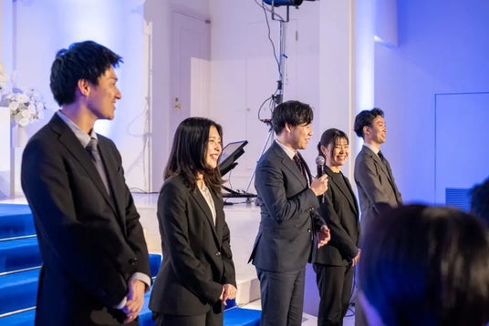 近年、アニヴェルセルは結婚式以外にも入社式や表彰式などの企業イベントでの活用が広がっています。婚姻数の減少を背景にブライダル施設の非婚礼活用が進むなか、今回の入社式はその一つの事例でもあります。