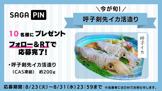 「呼子剣先イカ」プレゼントキャンペーン応募要項:https://sagapin.jp/news/cp4/