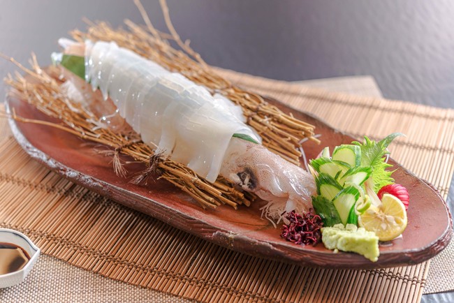 佐賀牛と並び佐賀を代表するグルメの一つである「呼子イカ」。活造りをまずは透明すぎる美しいイカの刺身で、その後、残ったゲソなどを天ぷらや塩焼き、煮付けにと二度楽しむことができます。そんな呼子イカの中でも今、旬を迎えているのが「剣先イカ」で、コリコリした食感としっとりとした甘さが特徴です。