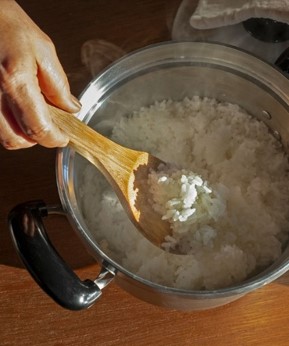 鍋の縁が高く吹きこぼれにくく、ほどよい圧力と熱伝導の良さで、羽釜で炊いたようなごはんが炊きあがります。火加減は少々必要ですが、コツはそれだけ。自分好みの炊き具合を探すのも楽しみの一つです。