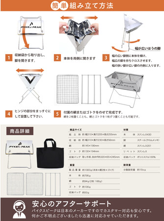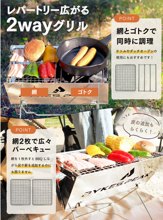 Fun Standard株式会社(本社:福岡県大野城市)が手掛ける自社ブランドPYKES PEAKは、焚火台、BBQグリル、料理用コンロとして使えるキャンプのマストアイテム【ファイヤーピットグリル】の予約販売を2022年9月22日(木)より開始いたしました。ぱっと開くだけで組み立てが完了し、ステンレス製の網とゴトク付きでBBQや料理用コンロとしても大活躍する商品です。更に、ご購入者先着100名様限定で標準価格3,980円が2,985円になる25%オフキャンペーンも実施中!