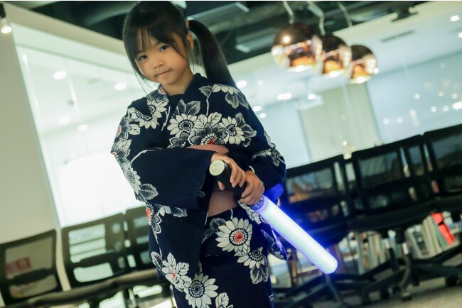 使うのはSASSEN刀だけなので、⻤滅の刃やSTARWARSなどのコスプレを邪魔することがない。保護者は光る刀を持たせて写真を撮るなど「見栄え」も魅力だ。