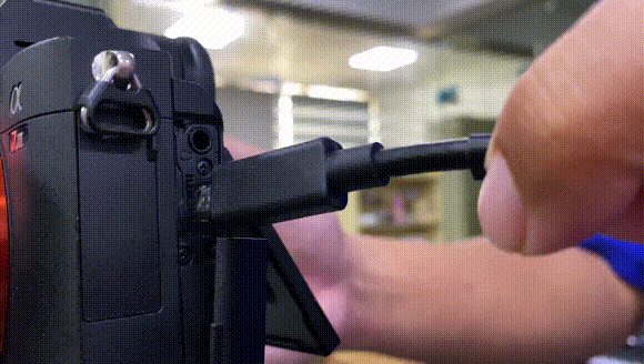 「HT02」を一眼レフカメラのHDMI出力端子に接続することで、撮影対象から離れた場所でカメラの映像をPCのディスプレイで確認できます。