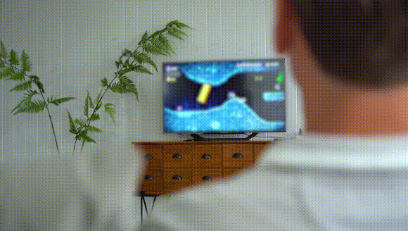 Switchなどのゲーム機で文字が小さくて読めないときや、ゲーム機とテレビとの距離が遠すぎてお手持ちのケーブルではテレビに接続できない場合、「HT02」でテレビにワイヤレス投影して大画面を楽しむことが可能です。