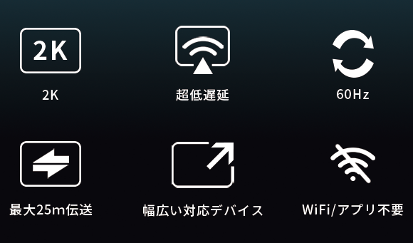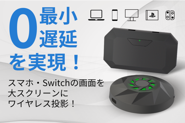 「HT02」は60GHzのミリ波という先端技術を採用しており、Wi-Fi/Bluetoothなしで簡単にスマホ・Switch・ノートPCの画面を大スクリーンにワイヤレス投影が可能で、最小「0」遅延と2K解像度を実現したコンパクト無線映像伝送器です。