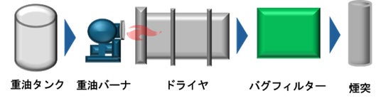 加熱・乾燥工程において、重油を燃料として使用する場合の装置構成