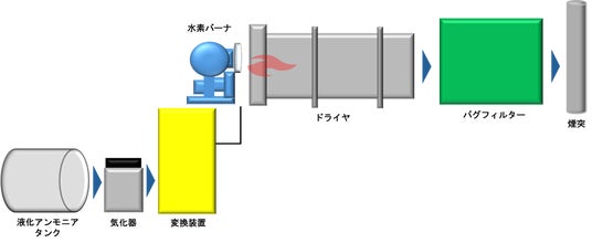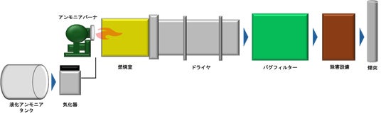 加熱・乾燥工程において、アンモニアを燃料として使用する場合の装置構成