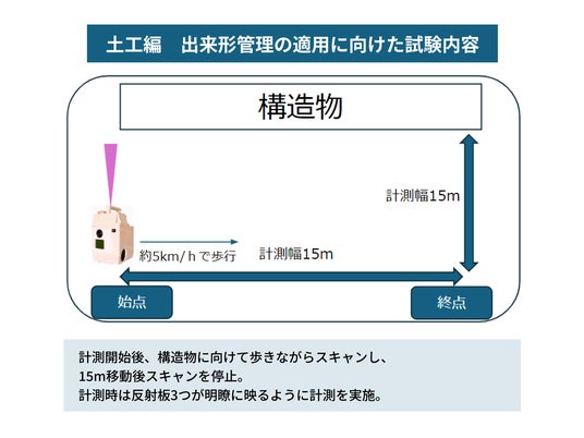 この度、既存のTLSとの精度比較・検証を清水建設株式会社の「温故創新の森NOVARE」にて行い、本機体において国土交通省が提示する「3次元計測技術を用いた出来形管理の活用手引き(案)」への適用を確認しました。