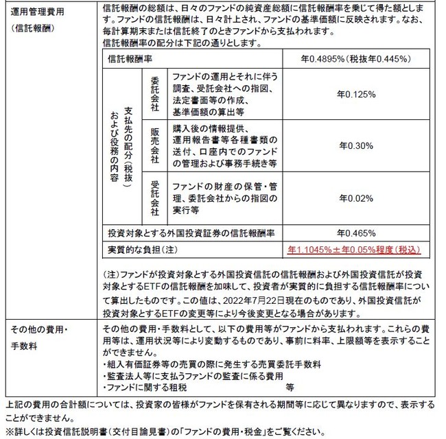 基準価額に0.3%以内の率を乗じて得た額(2022年7月22日現在0.0%)