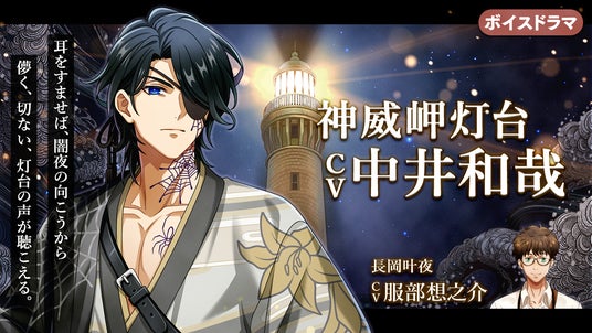 今回、「海と灯台ウィーク」を記念し、新作として中井和哉さんが守り人を演じた『神威岬灯台(北海道積丹町)』をお届けします。『幻想夜話』の第53弾となる本作は、服部想之介さん演じるルポライター・長岡叶夜と中井和哉さん演じる『神威岬灯台』との対話によって、『神威岬灯台』の歴史や魅力に迫るボイスドラマです。今回、特別にニコニコ生放送「灯台縁結祭(とうだいえんむすびまつり)2024」にて初公開する運びとなりました。