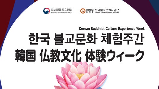大阪韓国文化院(院長 金蕙穗、大阪市北区)は、韓国仏教文化事業団(団長スニム* 萬堂スニム)と共に10月21日(月)から30日(水)まで、多彩な体験を通じて韓国伝統の仏教文化がわかる「韓国仏教文化体験ウィーク」を開催します。