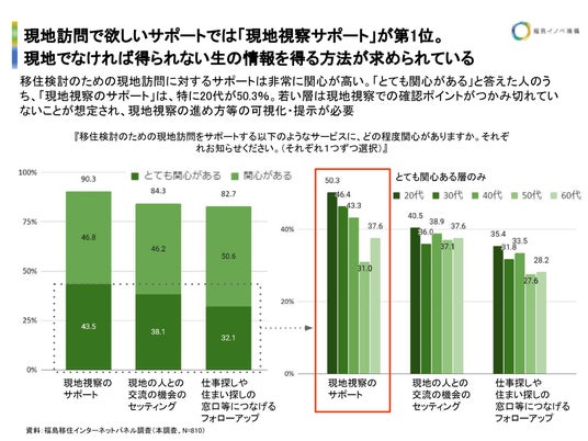 2023年12月に実施したインターネットパネル調査から、移住希望者、特に若年層は現地でなければ感じられない生の情報を求めているという結果が得られました(詳細後述)。この結果を踏まえ、今年度は、現地訪問のモデルコースや職場体験の情報発信等、センター全体の活動を通じて現地体験の強化をしていきます。
