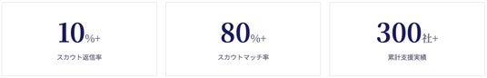 当社の人材紹介事業において、企業と求職者の双方を支援する「両面型コンサルタント」が毎月17万件(2025年4月~2026年3月平均)のスカウトを送信し培ってきたノウハウを活用。日々人材要件のすり合わせを行うことで、高い書類通過率と入社実績を誇り、多くの企業様から表彰もいただいております。