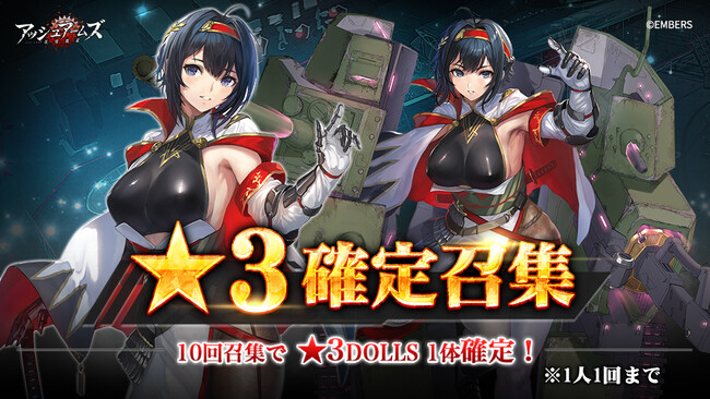 有料結晶石限定で10回の召集を行い、そのうち☆3 DOLLSが1体以上確定で出現します。