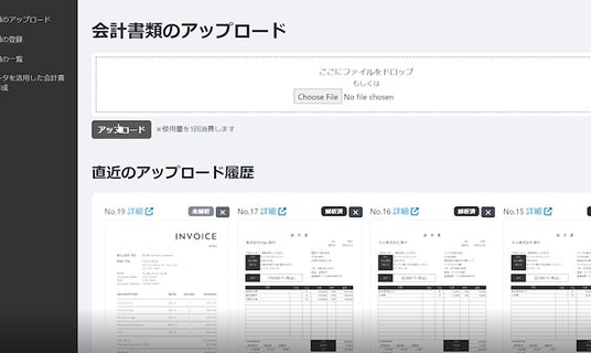 1.請求書などの画像をアップロードします。画像認識(OCR)でデータ化されます。