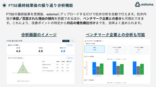 株式会社estoma(本社: 東京千代田区、代表: 伊藤総一郎)は、FTSE評価対応業務をAIで統合管理し、工数を最大75%削減(当社試算)しながら、提出前のスコア改善サイクルまで実現する機能「FTSE対応統合管理ダッシュボード」の提供を開始しました。