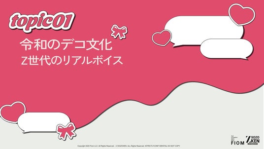 Z世代に特化したクリエイティブカンパニーFiom合同会社(本社:東京都渋谷区、代表社員:竹下洋平)が運営しているZ世代の実態や価値観を分析するシンクタンク、Z-SOZOKEN(Z世代創造性研究所)は、2026年3月4日(水)にZ-SOZOKEN THINKTANK 最新調査研究レポートの第3弾として『Z世代のデコ文化』についての調査研究レポートの第1章インサイトサマリー「デコとは」をリリースしました。