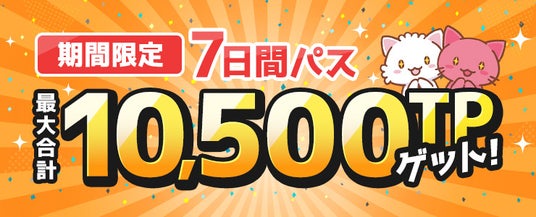 『期間限定7日間パス』は、購入時に7,000TPが付与されるだけでなく、購入日から7日間、毎日ログインすることで500TPを受け取ることができます。