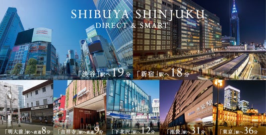 吉祥寺~渋谷をむすぶ人気路線「京王井の頭線」。新宿まで最速18分・渋谷まで最速19分という交通アクセスの良さはもちろん、下北沢駅・明大前駅など流行感度の高い人を多く集めるエリアを有します。注目店の開業や、ファッションにまつわるイベントの開催など、話題は尽きません。資産価値にも期待ができます。一方、浜田山、久我山などの高級住宅地も有するエリア。都心に住む魅力を存分に味わいながら、上品で穏やかな暮らしも実現できる杉並区らしいプライベートライフを楽しめる立地です。