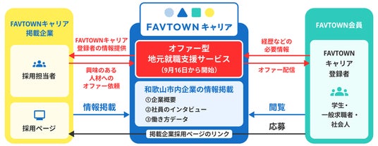 今回、その取組をさらに強化すべく、和歌山市とシナジーマーケティング株式会社が連携協定に基づき、市外へ出た若者を中心として関係人口創出に取り組んできた「FAVTOWN(ファボタウン)」の強みを活かし、新たな地元就職支援サービス「FAVTOWNキャリア」を7月15日より開始します。