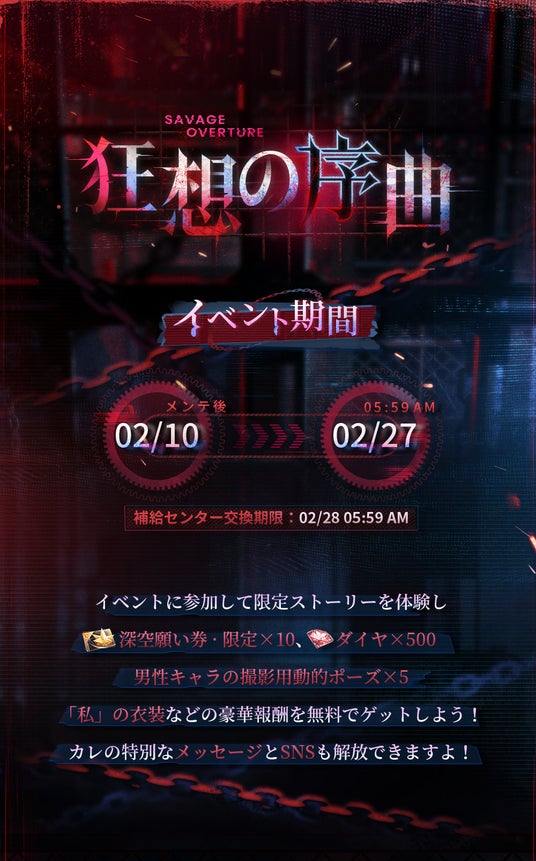 INFOLD PTE. LTD.は、全世界1億DLを突破した『恋とプロデューサー』の世界観を継承した完全新作恋愛シミュレーションゲーム『恋と深空』において、2月10日(月)11時より新イベント「逃げ場なき明日」を開催することをお知らせいたします。