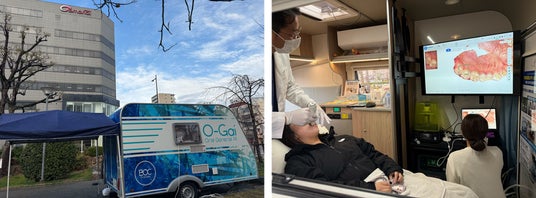 当日は、医療MaaS車両「O-Gai」が待つ本社目の前のザビエル公園へ、社員が順次出向きました。車内では、歯科医師による口腔内スキャンを実施。受診した社員からは、「会社からすぐの公園で、本格的な検診が受けられるのは非常に効率的でありがたい」「自分の口の中がモニターに鮮明に映し出され、健康への意識がさらに高まった」といった喜びの声が上がりました。