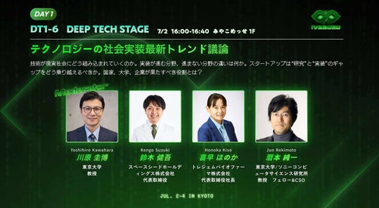 鈴木は、初日7月2日(水)16:00より「DEEP TECH STAGE」にて行われるセッション『テクノロジーの社会実装最新トレンド議論』に登壇します。