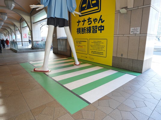 2026年1月21日(水)から1月27日(火)までの1週間、4月の入学前の備えを呼びかける目的で、ナナちゃん人形が「横断歩道を渡る練習をする園児姿」に変身します。