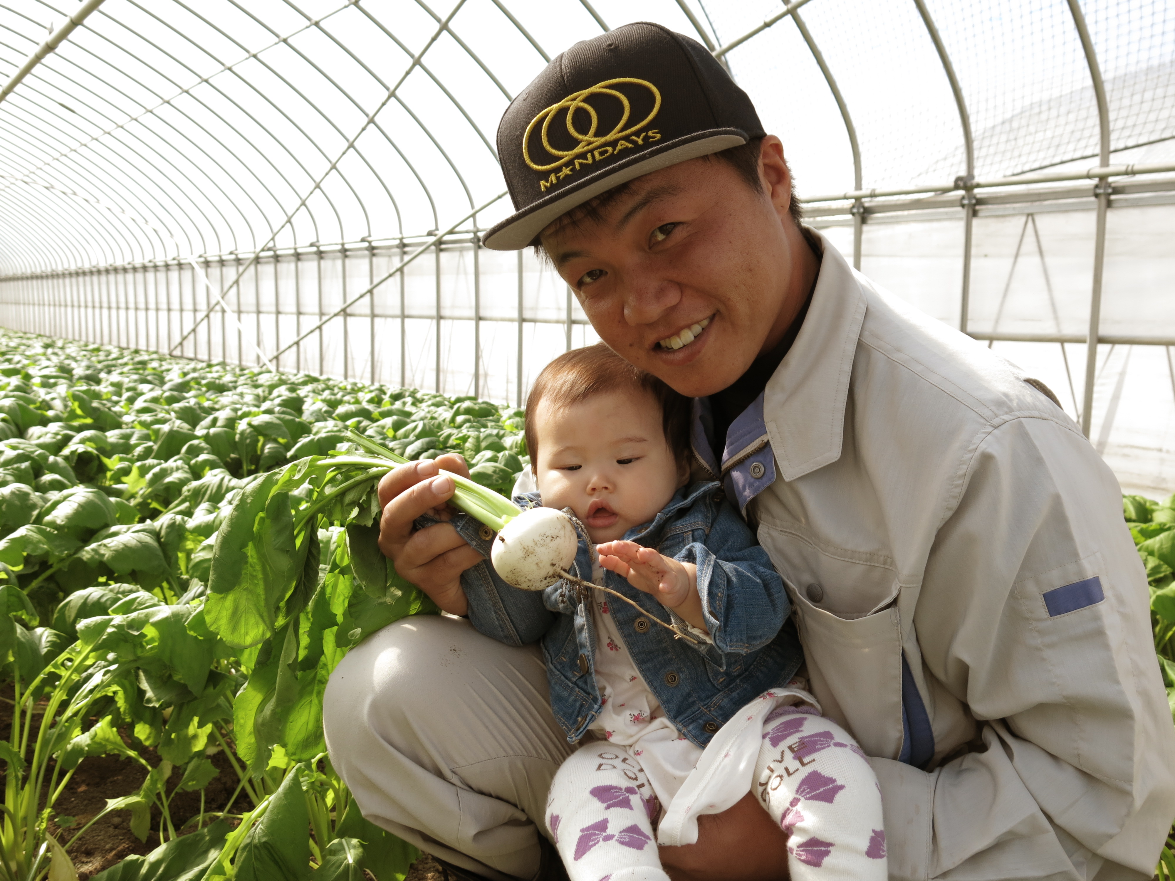 ジューシーでみずみずしい「フルーツかぶ」が人気を集め、昨年、若手部門最優秀賞に見事輝いた西岡優さん(現在34歳)。今年は、すっきりとした味わいが特徴の小松菜にも「えぐみがなく、おいしい」という声が集まり、昨年に引き続き若手部門にノミネートされました。