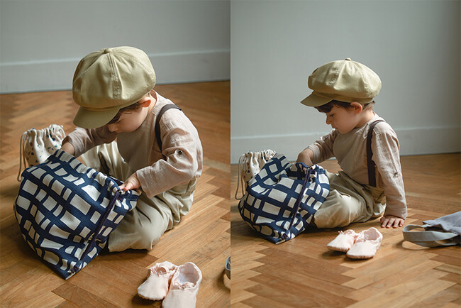 子どもにとって、巾着に指を入れて開く作業は実は想像以上に難しいこと。MARLMARLでは開け口の左右にサポート用のタブをつけました。 力が弱い子どももつまみやすく、日常の小さな「自分でできた」を応援します。