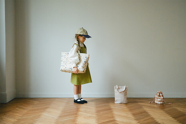 バッグが自立することで、荷物の出し入れがしやすく、子どもが通学準備をする時のサポートに。日々の「自分でできた」を応援します。